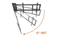 只要按一下附送遙控的按鈕,提供高達90度的完整旋轉,電視就會自動擺出並停在需要的位置。作為具有革命性設計的電動式掛牆架,絕對可以滿足您的需求。您可以在不離開座位的情況下選擇自己喜歡的位置,找到完美的視角