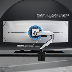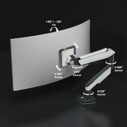 我們的 LDT61-C012L RGB 遊戲顯示器臂具有重型傾斜樞軸,可安裝最大 49 英寸的屏幕,重量最大 44 磅。它通過時尚的設計和涼爽的環境照明來增強空間。讓遊戲玩家和辦公室專業人士可以自由移動並定位超寬曲面顯示器,例如 Samsung® Odyssey G9 遊戲顯示器。您的客戶會喜歡這款適應性強且可以輕鬆重新定位大型顯示器的顯示器臂!
